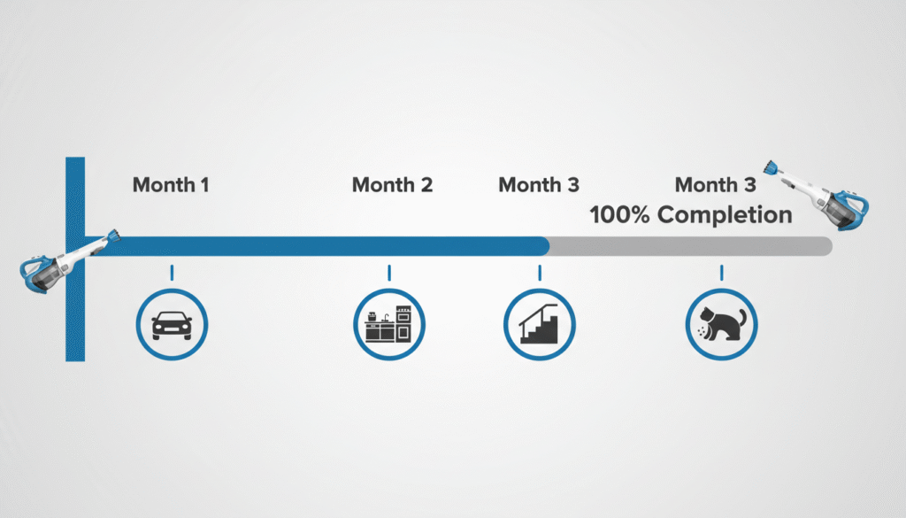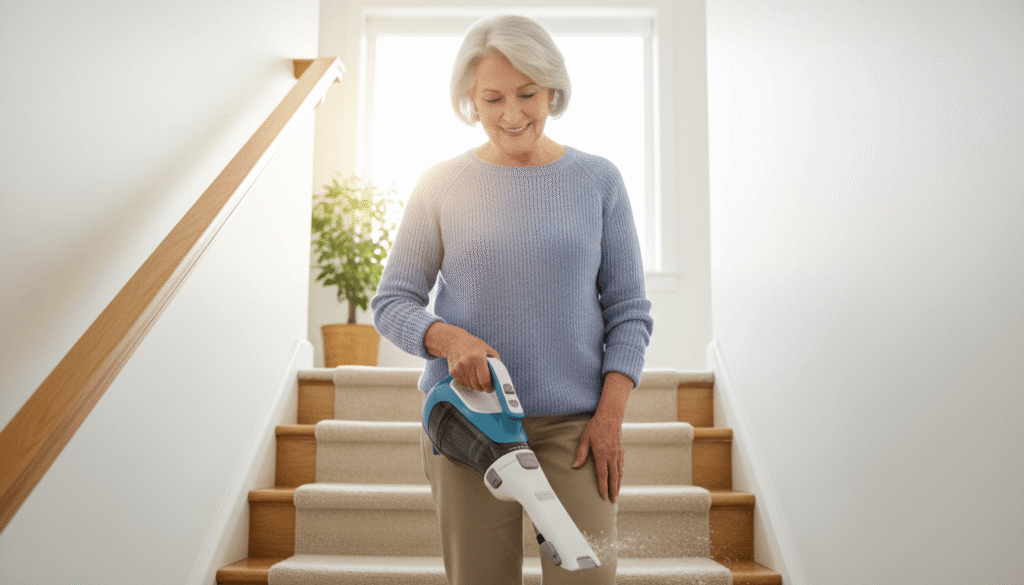 - Stair vacuuming: 8-10 minutes (covers about 12-15 steps thoroughly)