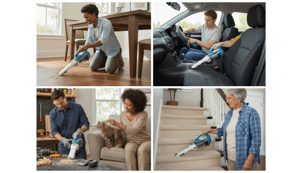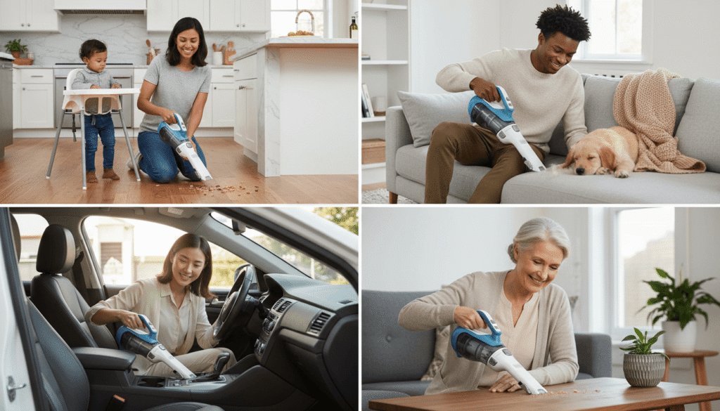 ✓ Parents dealing with daily kid messes ✓ Pet owners managing fur and dander ✓ Car owners wanting easy interior maintenance ✓ Anyone supplementing a full-size vacuum ✓ People with limited storage space ✓ Budget-conscious shoppers seeking value ✓ First-time handheld vacuum buyers