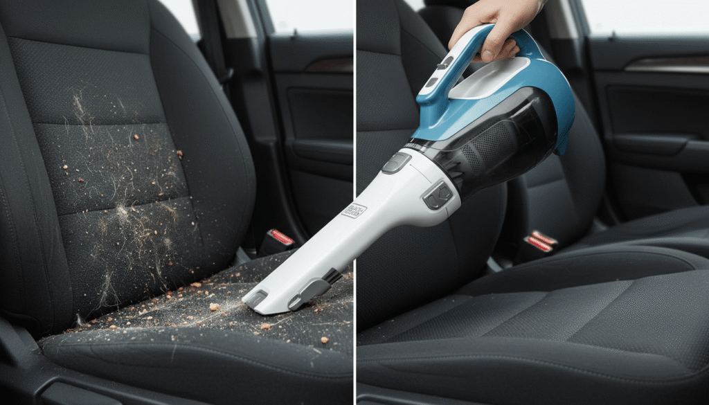 [Product Image Placeholder: In-use demonstration showing the vacuum cleaning car interior]