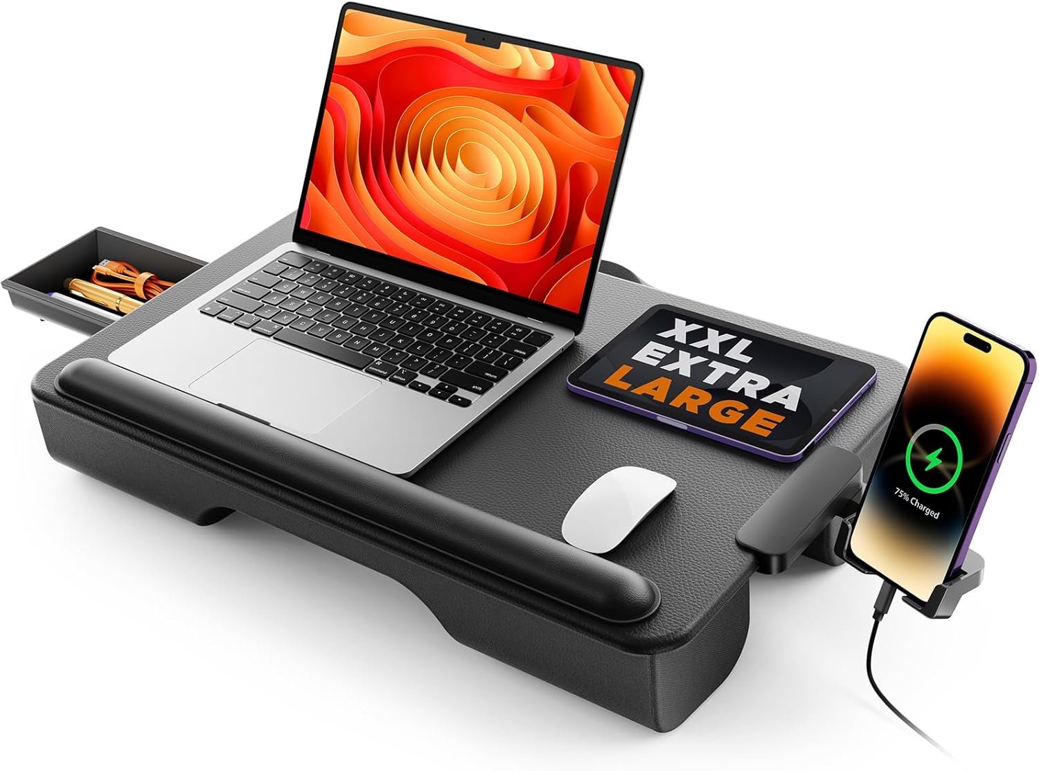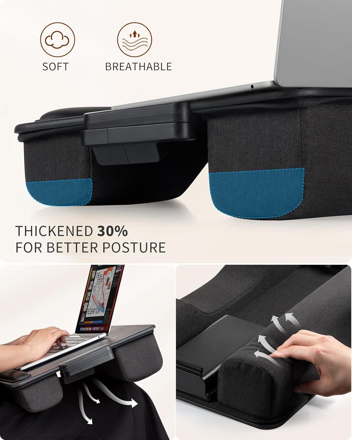 The SAIJI Laptop Lap Desk is a lightweight, portable workstation designed for working, gaming, or browsing from your bed, couch, or floor. With a large surface that fits laptops up to 17″, a built-in storage drawer, comfortable wrist pad, and thick cushioning for your legs, it enhances comfort and productivity on the go. Perfect for home and dorm use—discover its benefits and features for everyday use.